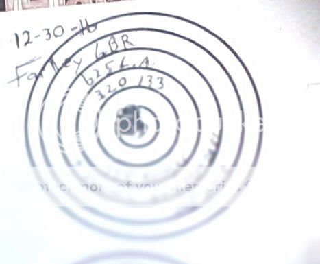 had Tim punch out my 13.5 twist 6PPC to a zero freebore .268 neck 6BR,,I started with some 62.5 gr bullets I got from Larry Averitt and VVN133 I had left from the 6PPC that is pretty slow for 133,,I started at 30 grs loading one round ever .3 grs looking for pressure and at 32.5 the primers were getting kinda flat so I loaded 5 at 32.0 and put them on paper,,
