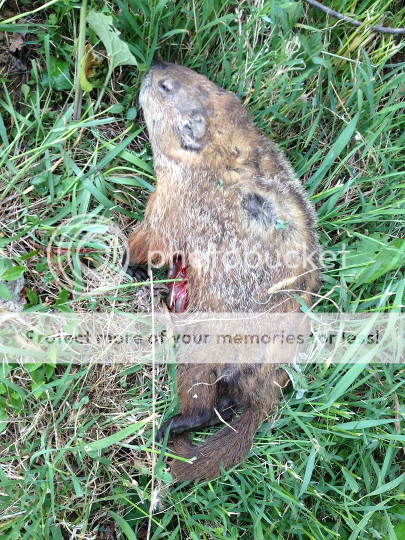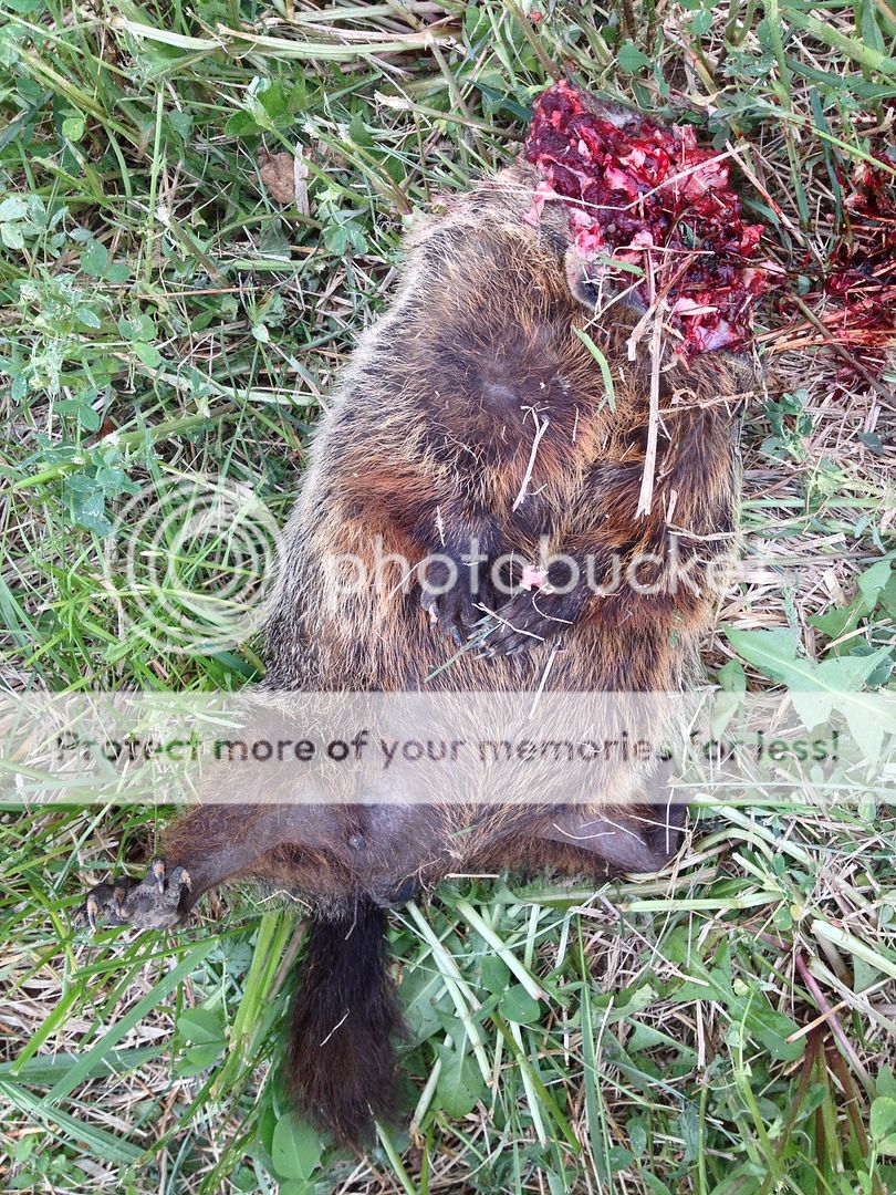 The farmer was collecting his round bails so there was a short delay but it wasn't long after he pulled off the field that this Boar stood up at 267 yards. He didn't move after being hit! What a difference 14 grains additional bullet weight makes!