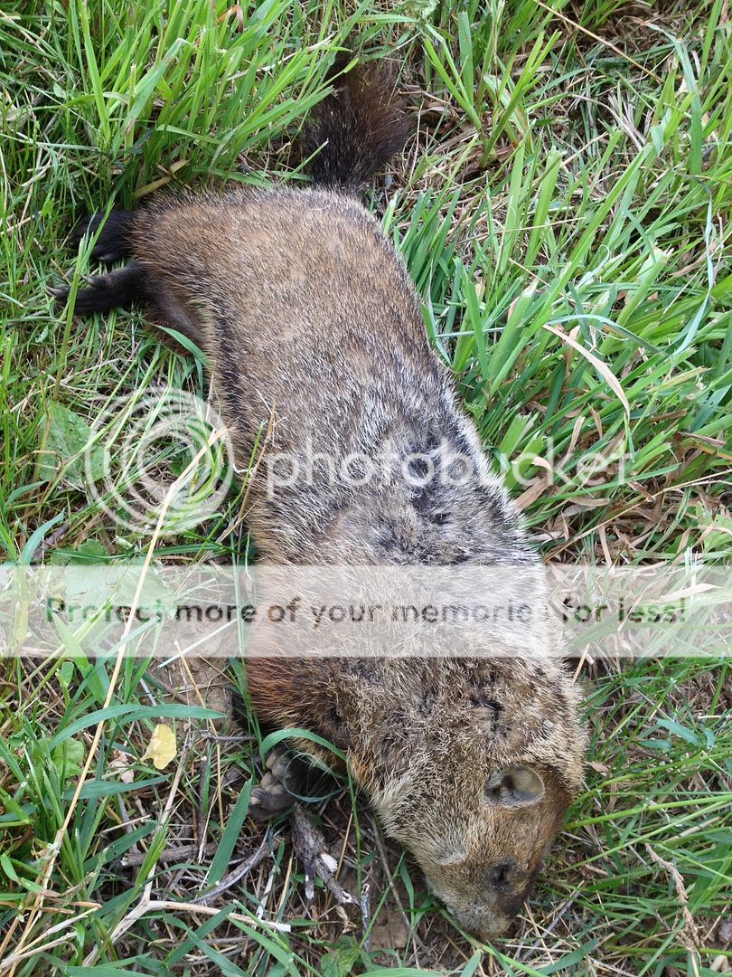 Much to my lovely wife of 34 years chagrin I went out again last night. After the two that got away, with what seemed to be hard hits, I took the .20-.223AI with Sierra 39 gr. BK's at 4147 fps MV out. It wasn't long when this Boar appeared at 130 yards so I thought of Snert and planted one in the noggin'!