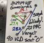 I forgot to mention that barrel heat is noticeably reduced with the 22 PPC compared to the 22BR. A quick 9-shot ladder of 3 charge weights barely changes the barrel temp. I am curious if it will heat up noticeably faster when I get up near max pressure.