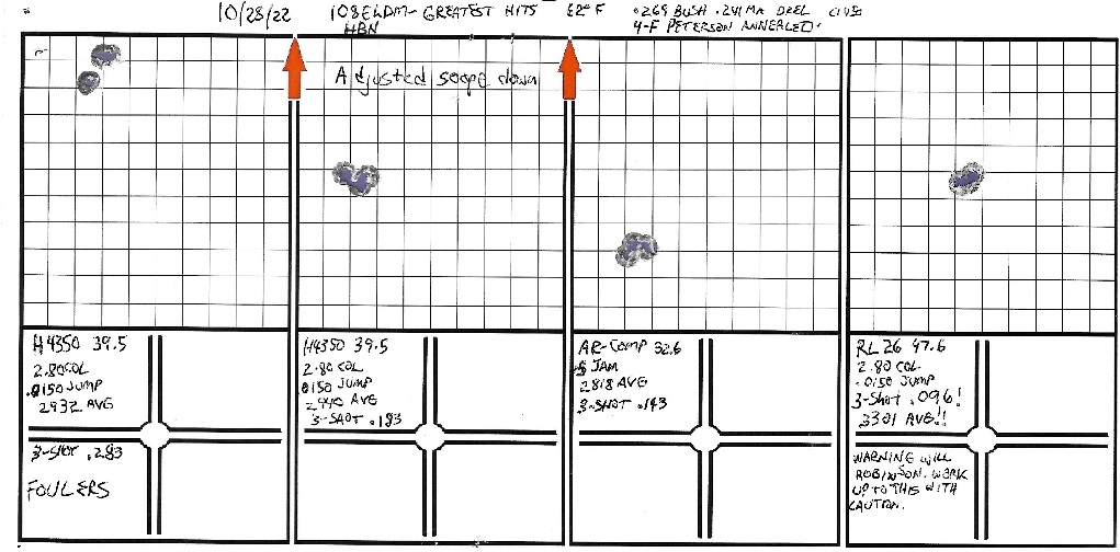 You must have missed the post's that Hornady bullets are junk.I managed to get three sessions in since my last post, slowly tightening the ladder. My 26" 1:8 aftermarket barrel on my RPR liked 41.6gr of TS15.5 with the bullet .020 off the lands. The produced a .209 3-shot group at 100 yds. I got even better results with 41.7gr H4350 on the lower node and 44.5gr on the upper. Both also at .020 off the lands. The 41.7 load produced a .142 3-shot group and the 44.5 yielded a .116 group. I burned through around 50 shots refining that down and had to limit my last attempts to 3-shot volleys because I ran out of bullets. This is probably the last comfortable weather hurrah of this season. FWIW, I doubt that I've put more than 100 rounds through this new barrel, so it may improve with additional break-in, when comfortable weather returns in April. I was using 3-F Peterson SRP brass that has been annealed after each loading and CCI450 primers. Hopefully, the groundhog doesn't see his shadow next February.