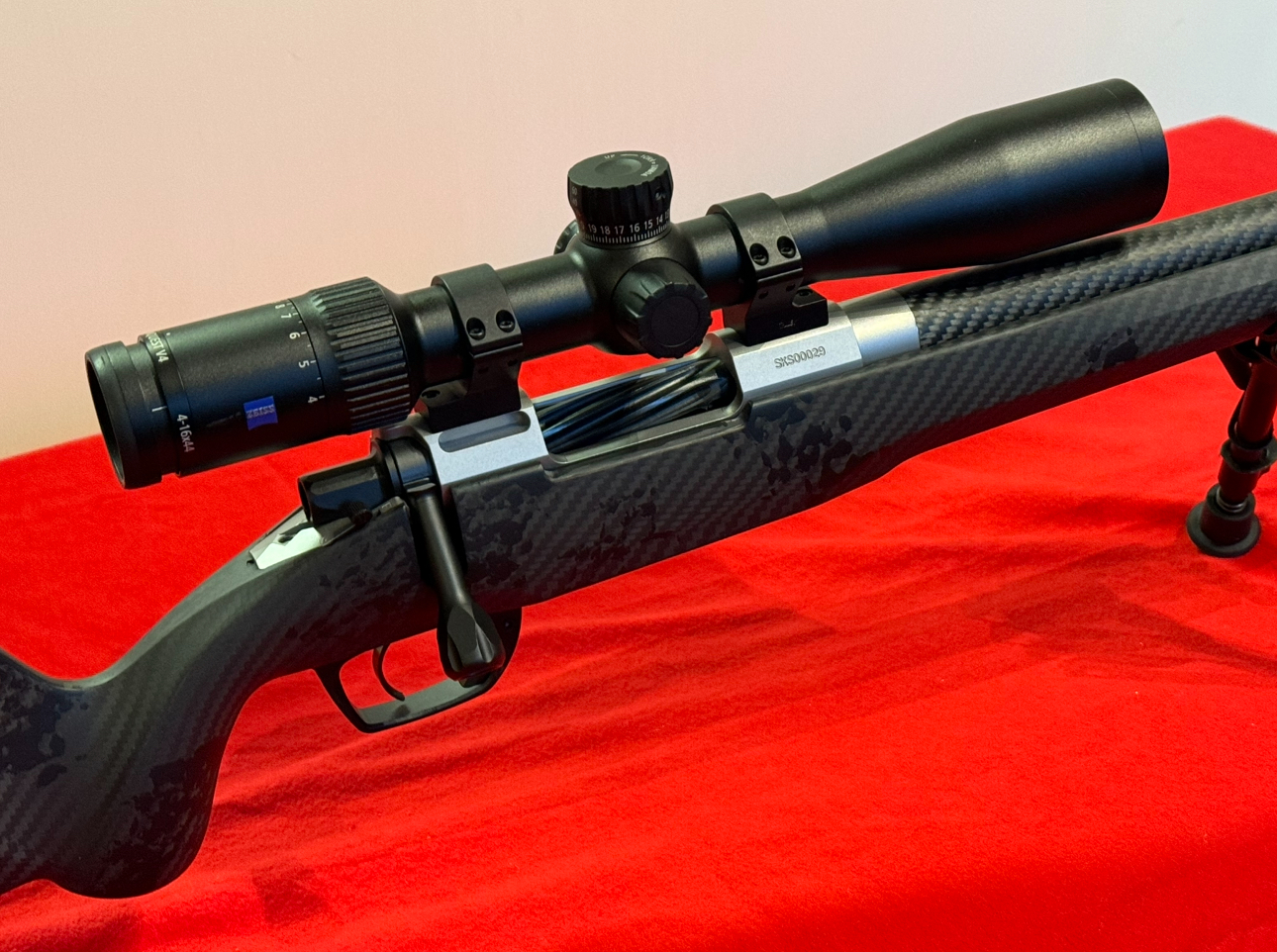 Pure Precision SKLTN SA, Gunwerks Clymer Stock and bottom metal, Trigger Tech Special Trigger, 24 inch Benchmark CF Barrel, Talleys holding a Zeiss V4 4-16x44 8lbs 1oz scoped