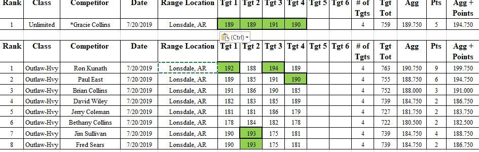 Paul East took 2nd place taking high card on T4-190 overall aggregate of 188.75