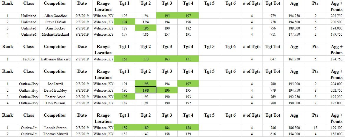 Congratulations to Allen Goodloe, Joe Jarrell, and Lonnie Staton for their 1st place wins in Kentucky's ABRA Match 09.08.2019