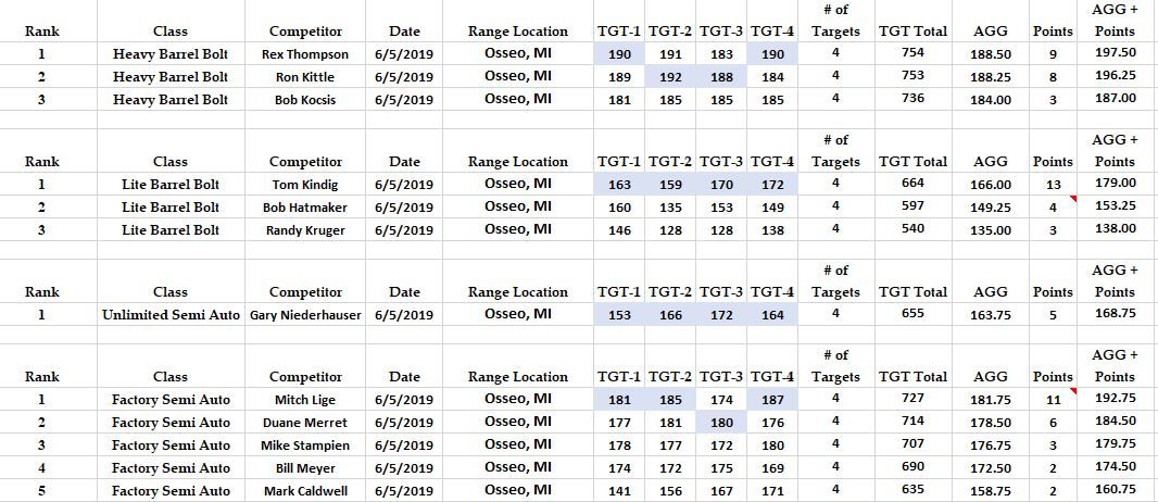 Rex Thompson took 1st place in the Outlaw Hvy Barrel Class shooting an aggregate of 188.50 taking high card on T1-190, T4-190