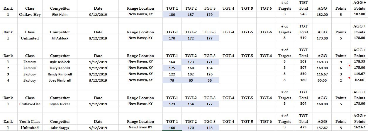 1st Kyle Ashlock aggregate of 169.33 target total of 508