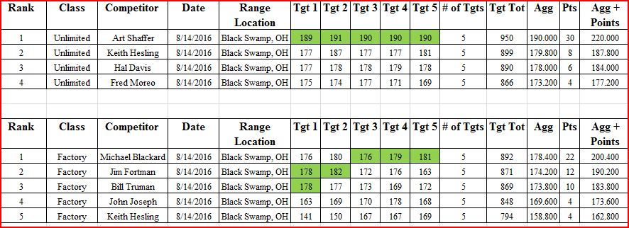 1st Michael Blackard High Card Target 3 176, Target 4 179, Target 5 181 agg of 178.4