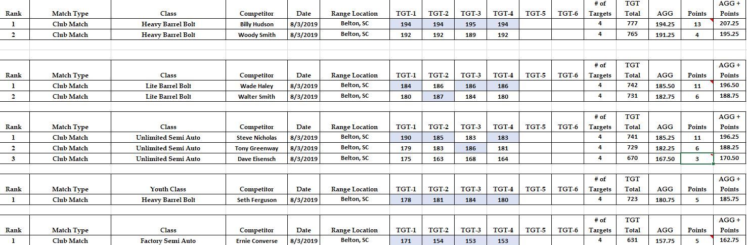 ABRA Belton SC Results 08/03/2019
