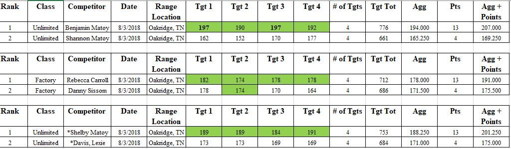 Shannon Matoy took 2nd place shooting an aggregate of 165.25