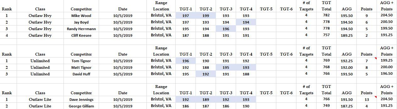 Congratulations to Mike Wood, Tom Tignor, and Dave Jennings for their 1st place wins in the ABRA VA match held on October 5th 2019.