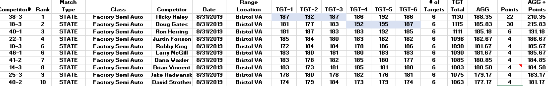 1ST RICKY HALEY SHOT AN AGGREGATE 188.35 TAKING HIGH CARD ON T1-187, T2-192, T3-187