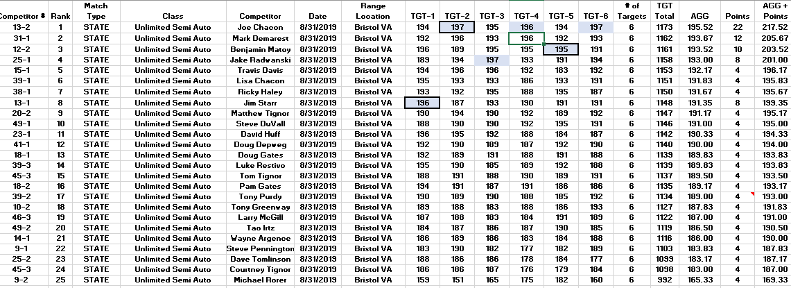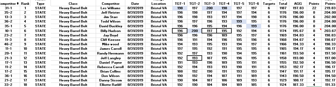 1ST LUKE CARROLL SHOT AN AGGREGATE OF 194.33 TAKING HIGH CARD ON T1-199, T2-193, T3-197, T5-196, T6,194.