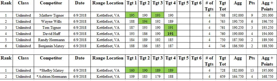 David Huff came 4th place taking high card on T4-191 overall aggregate of 190