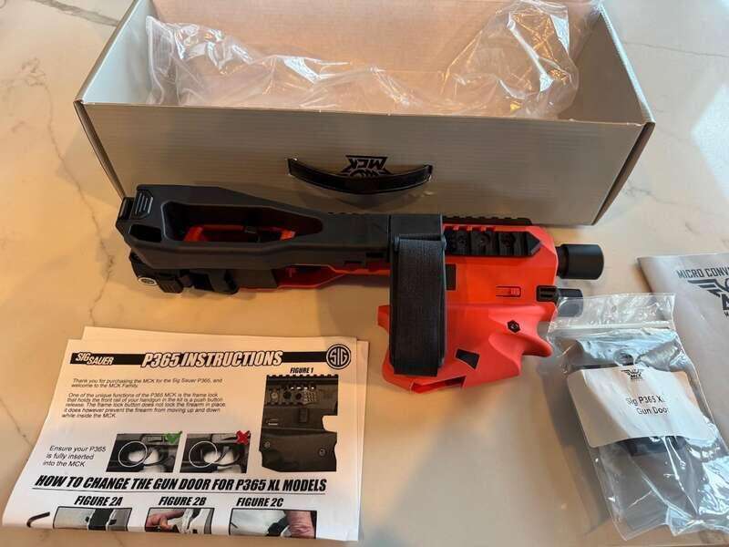 I won this Micro Conversion Kit at a shooting event and won't use it. Fits the Sig Sauer P365 and P365XL. They list the color as Orange, but its more of a rust/red color to me. Looks like they sell for $260-$300 retail. I'll take $200 shipped for this one. 100% brand new in the box.
