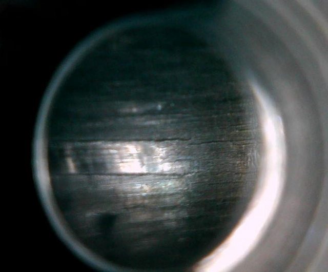 The first pic in each is after four shots from the barrel after being cleaned and JB'd to bare steel. Per my normal routine after cleaning, a patch with a couple drops of Kroil went down the barrel prior to the first shot.