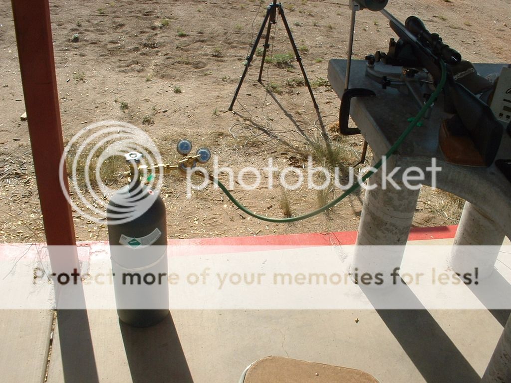 The idea is to use a slow flow from a 20 lb CO2 tank to bring the warm barrel to ambient. I only shoot two rounds from a magnum, cool, then wait for the barrel to stabilize to ambient. I use a infrared temp gun. I have found this is the fastest way to develop a load in our hot environment. The intent is to try and duplicate hunting conditions where the first round is from an ambient temp barrel.