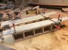 Since I used pillars, my cut depth for my bottom metal is now set. Since I marked my action screw centers all the way around my blank, I can cut my blank for the bottom metal install. I don't follow the stock lines yet. I cut close to the line but make a flat cut so I can use my jig for the bottom metal cut, check for fit and clean it up with chisels and maybe a Dremel tool.