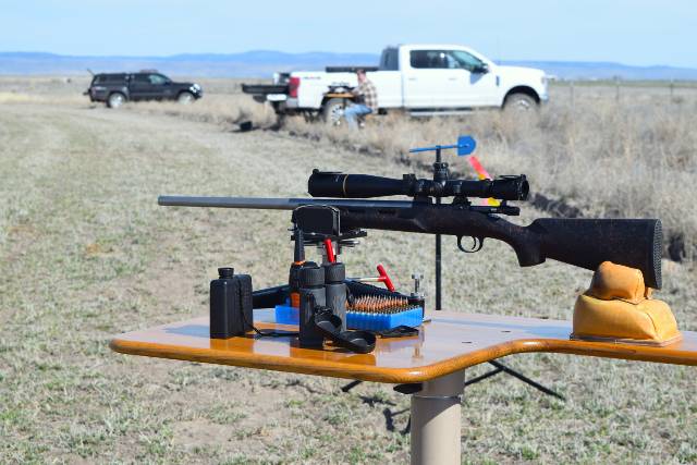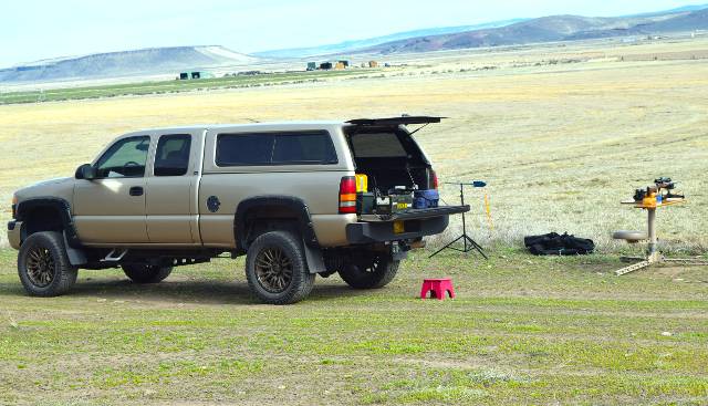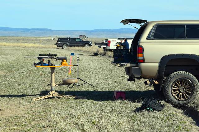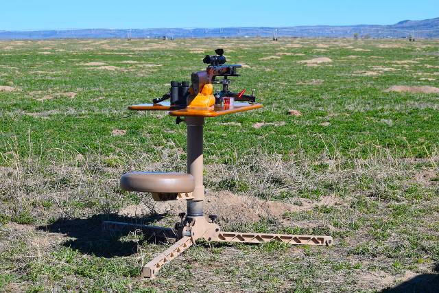 We parked our trailers and got ready for the next day of shooting. As our 'rat camp' borders a good field that had been just harrowed, I set up my Death Grip tripod with my Anschutz 1715D HB in 17HMR for some casual rat shooting right in camp. Seemed like a good idea, and it didn't take long to need another box of ammo.