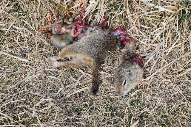 The next day we shot a different ranch that had an amazing amount of both squirrels and their mounds. Once targets worthy of the 17HMR were scarce, I broke out my Cooper M38 in 221 FB shooting Nosler 40gr Varmageddon's over A2200 at 3,100 fps. Results were 'pleasing'