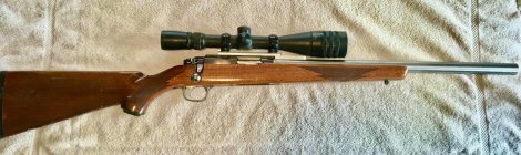 Early Ruger 77-22, 22Mag, receiver threaded and Lothar Walther barrel installed. Barrel is/was, a 10-22 barrel - tighter 22lr bore, chambered with my min. spec'd reamer. Trigger worked to a very nice 12oz. Old Weaver 4-16. This thing's been used on a lot of everything for about 25yrs or so and is an old friend. Not especially pretty but very nicely accurate, likes the Win. 40JHP and a couple cases of that have gone down the tube. .