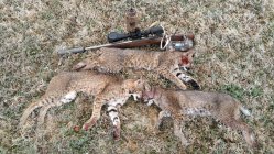 When the wind picks up or the dogs are far 6 creed 7.5 twist Bartlein on a Tikka action. 28" Heavy varmint contour and stock filled with lead shot and epoxy. It weighs about 25lbs. Recoil is non existent but the brake is loud. I double up on ears.