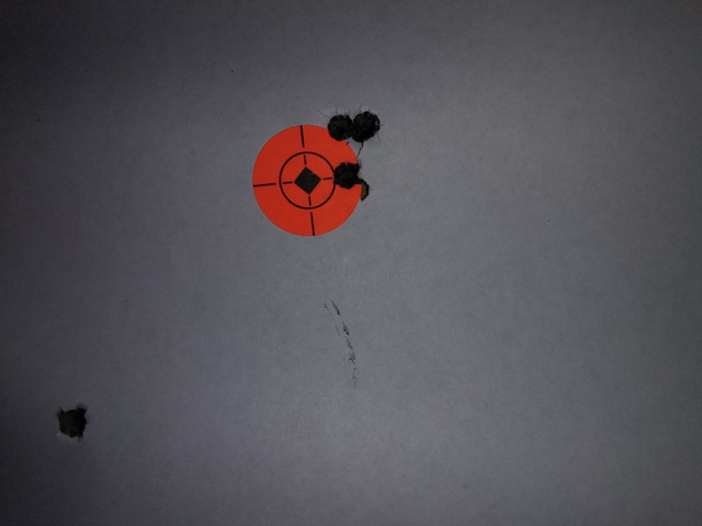 While cleaning the barrel after the last three shots, the wind came up and I ended up chasing my target down a couple hundred yards away. Didn't get to shoot any more, but I really like what I am already seeing.