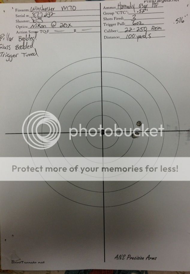 Edited to add a pic of the 22-250 and a target after I accurized it. Before it was doing 1.25" or larger groups with the same ammo!