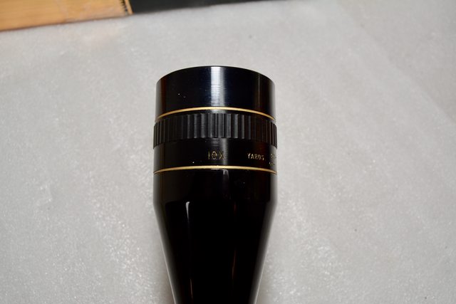 10x fine crosshair reticle. Focus down to 25 yds. Tube has a couple light marks. Has a box, but not the original. $300 shipped