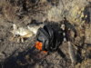 But yesterday it was calm, 5 degrees below zero (F), with fog and spectacular hoar frost. I tried nutty nuthatch, adult cottontail, lightning jack -- zip. After 5 cycles of pup distress I caught a glimpse of 2 coyotes behind me, sneaking through the heavy sage. For several minutes I played vole squeaks, kitten distress, pup distress, etc. without getting the coyotes to reveal themselves or charge the call. Finally I spotted the adult female, sitting 110 yards away, with just her head showing over the sagebrush. She wasn't going to come any closer, so ...