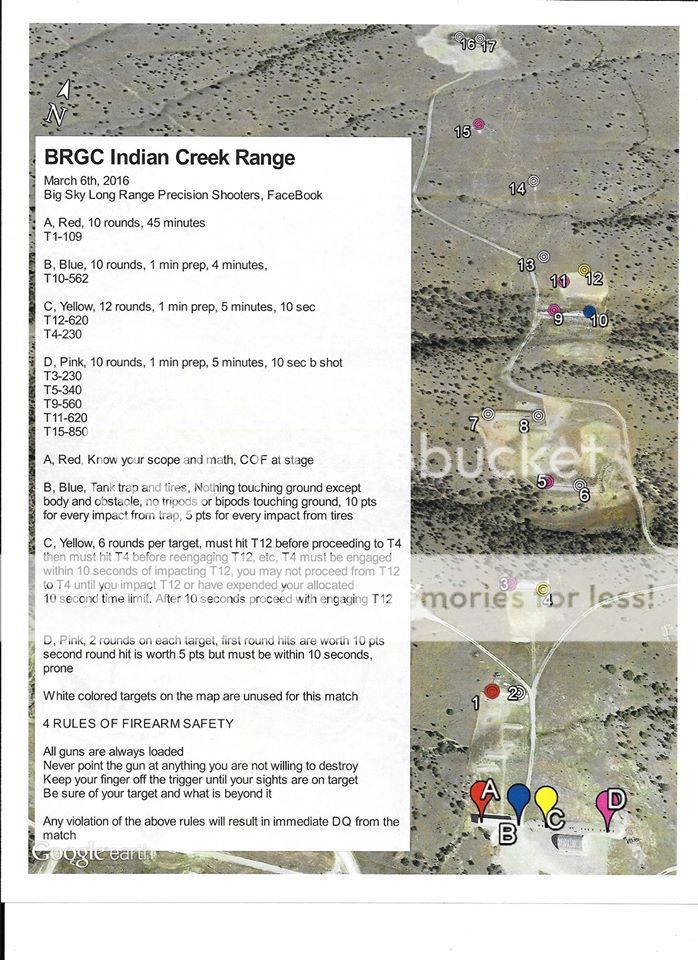 0730 shooters meeting, shooting by 0800 and done by 1230. Cash purse, $25 entry fee, bring 50 rounds, distance from the muzzle to 1015 yards and range is located off of Indian Creek road just north of Townsend. This is a "practical" long range rifle match. Do not expect that all shots are taken from the prone position. Also expect time limits, improvised shooting positions, small targets and a GREAT time. Each stage will have its own course of fire. Some steel targets and some paper targets, so expect the unexpected. Please share!!!! Don't be the guy left stuck on the fence as this is a great introduction to long range rifle matches. Post, message, email or text with any questions.
