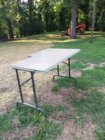 I found an old folding table and harvested the legs. I widened the legs and added ~3" in height.
