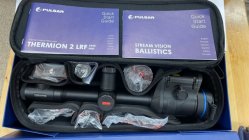 I am selling one of my Thermal rifle scopes to upgrade to a newer model. This scope is as new and was a NEW replacement scope under warranty...my original scope had an ongoing minor issue and Pulsar finally replaced it with this new scope under warranty. I received it in April of 2024 and it has been in the box since then. The XP50 LRF has an integrated Laser Rangefinder(LRF), 640x480 resolution, built in video recording and detects heat signatures up to 2000 yards away. I have another Pulsar Scope that I have used this season to hunt with, so have decided to sell this and get the next model up. It has 4years/3 months left on the 5 year warranty and has everything that it came with from the factory...eyecup, charging block, cord, APS2 battery, tall and short battery caps, manuals and warranty card...and I will include an APS3 battery with this as well. Price is $4500 NOW $4300 shipped and insured to the lower 48. Check or money order only. First "I'll take it" gets it.