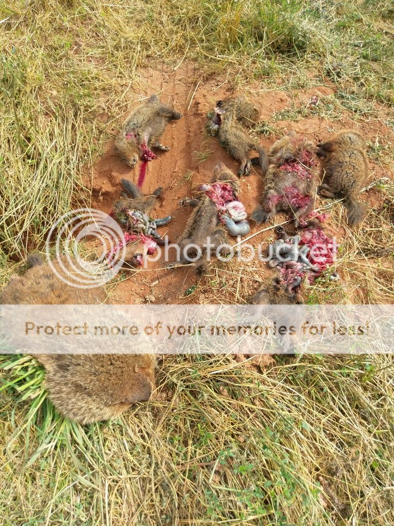 My hunting buddy went out earlier and whacked five. I got a couple hours in late and killed two. Longest was this one at 104 yards. He had a couple misses and I had one. Saw another dozen or so but they didn't let any grass grow under their feet and skidaddled as soon as they saw the truck. Hay was still on the fields along with a few chopped up rabbits being cleaned up by two bald eagles. Seems to be more and more of them every year in our area. We're blaming the misses on the wind. :p:DIMG_20180607_184533880.jpg