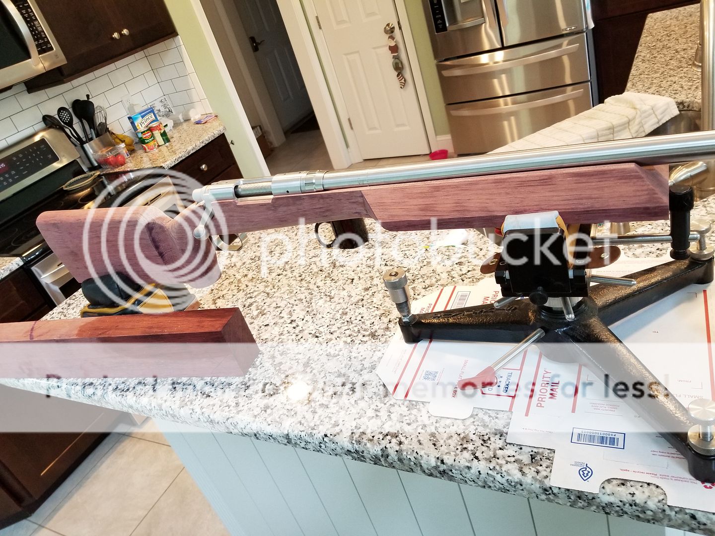 Just some final shaping, sanding and finishing and she's done. I'll bed the action after I have it finished. I'm thrilled with how she turned out. Gonna be a pdog killer!