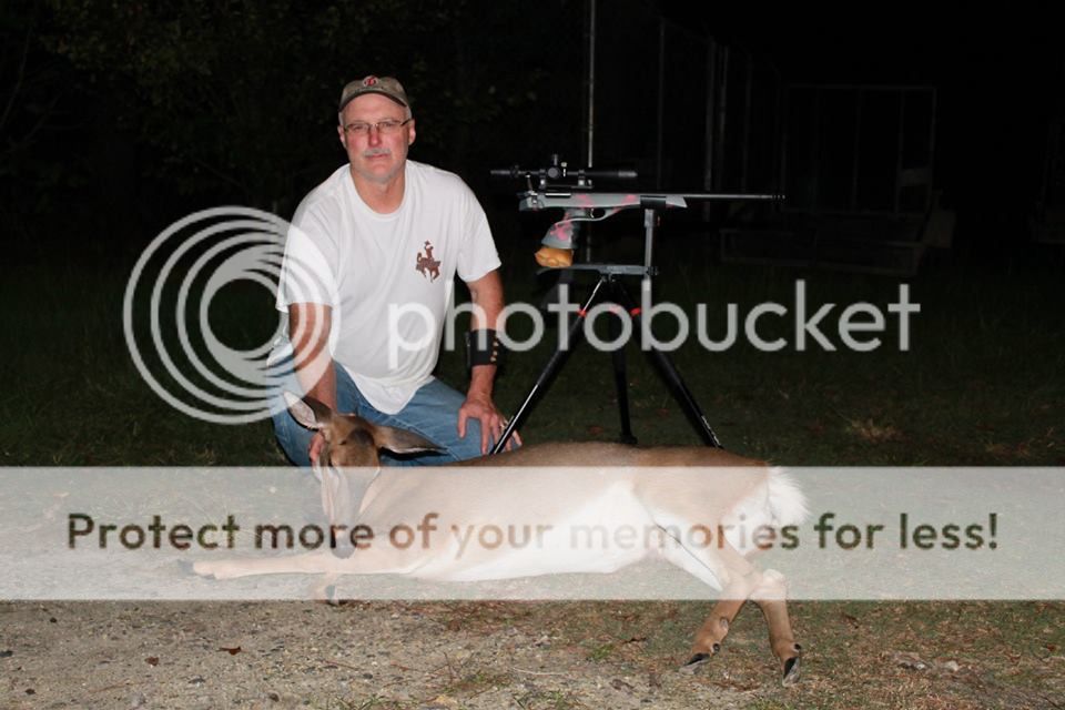 In the hunting department, our first night we could hear the pigs behind us in tight cover but they never came out in the daylight. We didn’t see much during the mornings, but others did and filled tags. I took two doe whitetail with my 290 USA from a seated position using a pop-up blind. The 198 grain Matrix bullet performed great. At 363 yards I had a front quartering shot and impact was through the front facing shoulder and angled taking out both lungs as well. The second deer was almost completely broadside and I took out both shoulders a 164 yards and she jumped straight up and then fell down in a heap. McGowen and Broughton both make .296 barrels. Mine is a McGowen and is a keeper. Chris and I separated on the last evening, and he blooded his 10 inch Franken-Ruger (180 grain XTP) at 101 yards from a seated position in a blind using the CLD-3 and the Sargent Sniper Rest. Great shot and the small deer went about 3 yards before it went down.