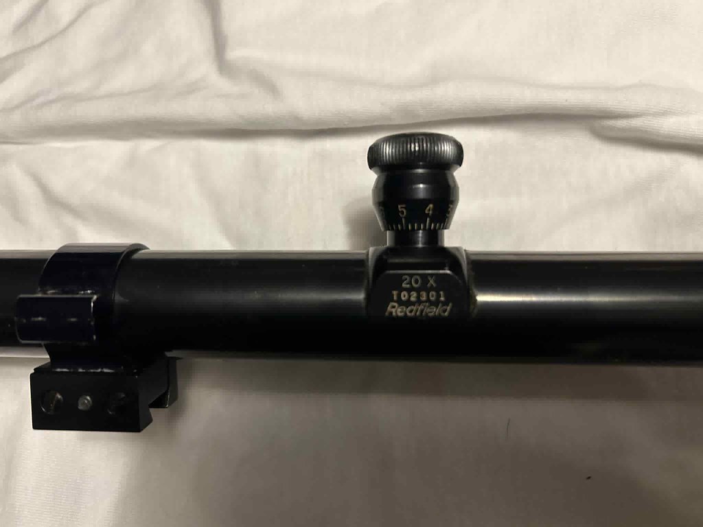 This is a 20x power scope, and the reticle is crosshairs with a target dot.