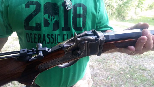 Dan Piatt shot the match with an old Springfield 1903 A-1 trainer with original Lyman peep sight rear and a blade front sight. He did very well tweaking settings as he went. Really accurate for being a gun built in 1937. Another very interesting gun that we got to shoot was a pedroncelli sharps clone in 45-70. It had a 22 rimfire barrel liner that slid in and was very impressive to shoot and watch being shot by others. Had the Vernier rear flip down sight which was very precise and easy to see thru. Many shooters hit the 197 yard plates, I tried it out and swung over to the clay pigeon at 195 yards and drilled it first shot. Didn't want to wast ammo so didn't back it up with a second shot :) Very impressive gun, I've always wanted a big sharps to try at Rayners 1000 yard range and this may be a push to look into one and also play the rimfire game with it.