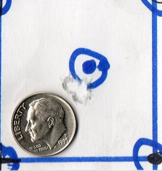 10 shot group @ 50 yds and a 5 shot in upper corner.