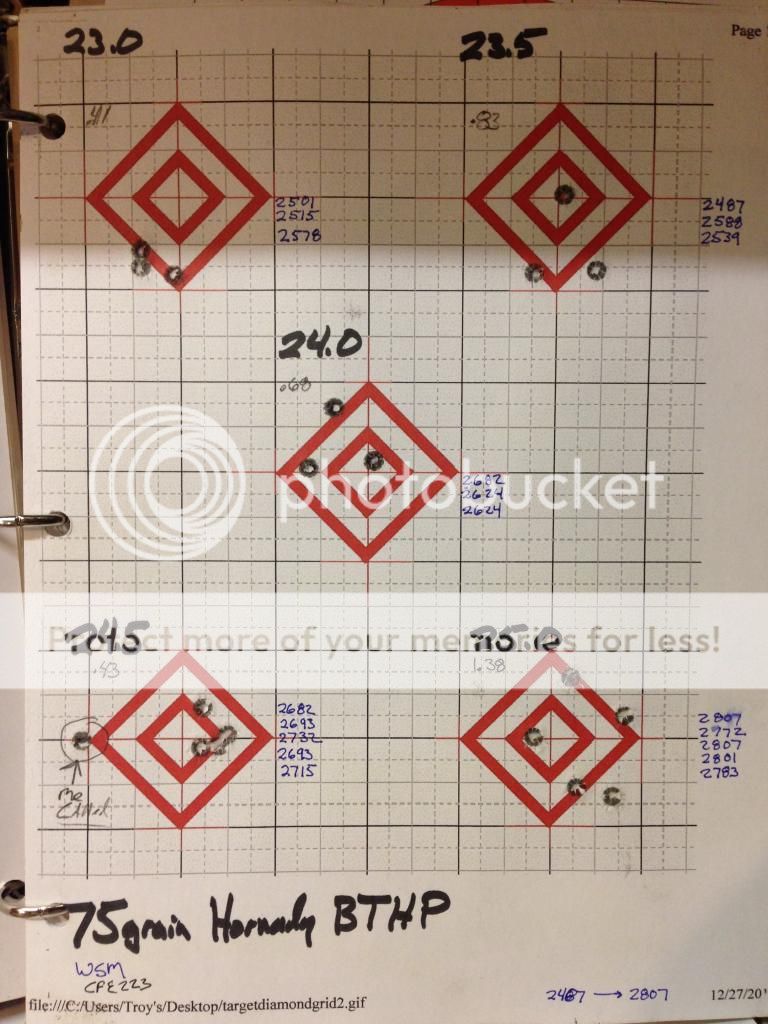 Want to say find best seating depth, use .2 gr increments on the powder, try 77 SMK, but have a notion it may reveal bad tool marks on borescope. Have seen some ragged ones past 3 yrs. Luck of the draw
