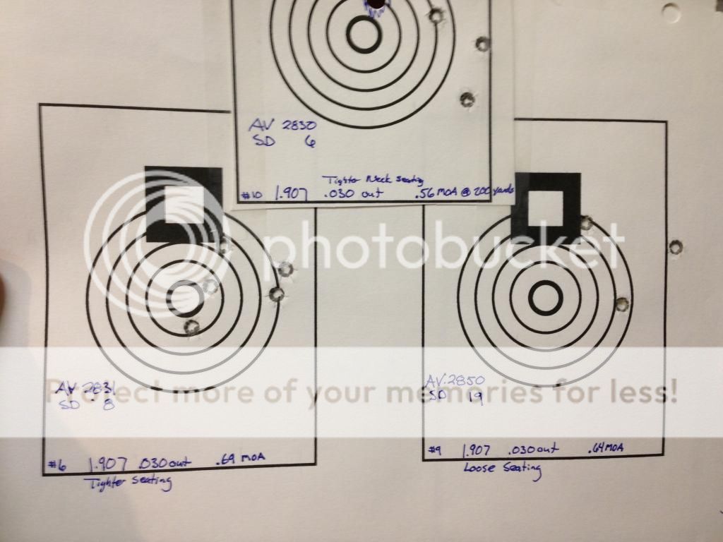 So the VT-11 is a $599 list gun the LRPV is a $1400 list gun just was expecting more. The previous owner is also offering up the Redding Comp Type S dies, maybe I need more neck tension to help tighten the group up... any thoughts or something I did not notice on the groups?