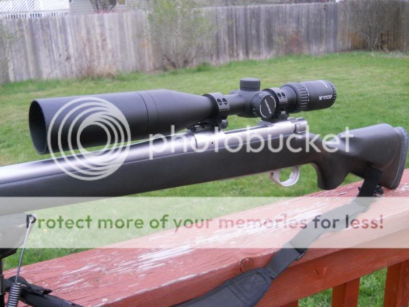 3) Stock - Weatherby Vanguard factory synthetic - cut down and installed new 1" Limbsaver recoil pad for 12.75" length of pull, reduced height and width of cheek piece, removed checkering and re-finished with high temp automotive "metallic black" paint and clear coat. Barrel completely free floating with "double-folded dollar bill" clearance all around.