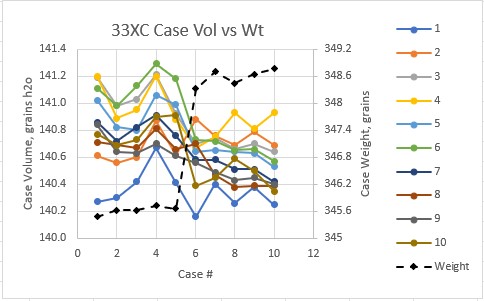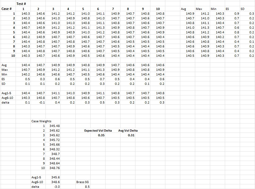 Is the observed variation practically significant? Good question @cdgaydosThanks for taking the time to share real data. My “assumption” has been that weight variation could be attributed to differences in the case head or other areas that would not impact volume.