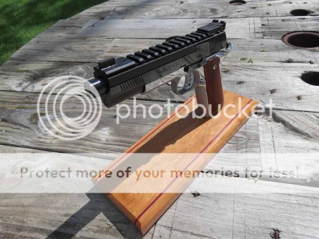 Built this gun for a BE shooter. It is a stainless frame with the new Marvel Precision steel slide conversion. This gun is a dream to shoot and is super accurate and reliable. Also, because the slide was steel I was able to polish and re-blue it for that extra bit of flash. Not a huge fan of this particular rib design, but, it does offer lots of flexibility for the shooter.