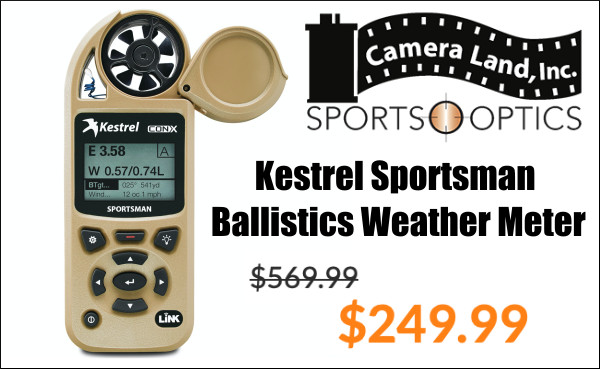 All shooters need accurate wind velocity and direction info. One of the best wind tools is the Kestrel. Forum member Knotwild found an amazing deal on the excellent Kestrel Sportsman Ballistics Weather Meter. This unit features the enhanced Applied Ballistics G1/G7 solver, including Aerodynamic Jump, Spin Drift, and Coriolis corrections for accurate long-range shots. Grab the Kestrel Sportsman for just $249.99. This same Kestrel Sportsman costs up to $500 elsewhere.