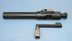 The third is to mill a slot on the right hand side (actually can be either side) and to attach a much longer and sturdier handle to the carrier side using two bolts. This allows a lot more hand purchase and for much more pressure to be applied directly to the carrier - important with the AR design having no primary extraction cams and often suffering hard bolt opening with high pressure loads. The handle has to be removed for field stripping, but that's not onerous, a minute with an Allen key - just don't drop and lose the bolts if you're doing it outside behind the firing line.