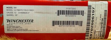 Winchester 101 Ultimate Field O/U 12 GA in excellent condition (almost New). Brush polished blued receiver with intricate engraving