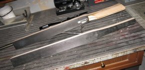 lynn- everything is running in the same direction. The wood came from two peices of walnut that I planed down and cut to shape. I don't think I am going to put a strip along the bottom of the stock, actually I think I am going to try and find some of the low-friction tape some shooters use for the fore-end and toe of the stock. I'd bet he does it by cutting out a peice of carbon fiber a fair deal bigger than the underside of the fore-end and trimming it along the sides of the stock so everything you see ends up clean. I did however add a strip in the middle of the blank that will run the entire length of the stock and depth of the fore-end,so it will end up in the top 2" or so of the butt) to further stiffen the fore-end and wrist.